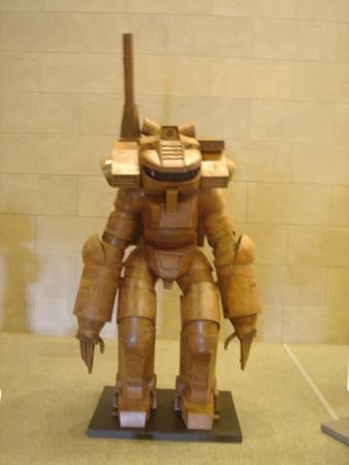 古典的なロボットが描かれた絵画や、アトムやガンダムの像、ガンプラのボックスアート、初音ミクなどの人気キャラクターまで紹介されています。