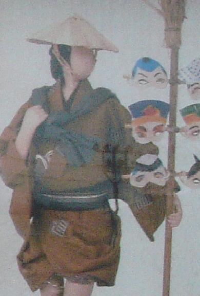 花見客などに、目かずらと呼ばれるお面を売り歩きました。