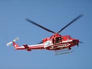 真っ赤なヘリコプターが、サイレンを鳴らしながらフライトします。