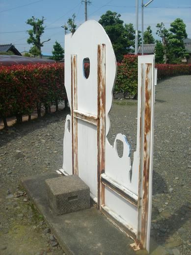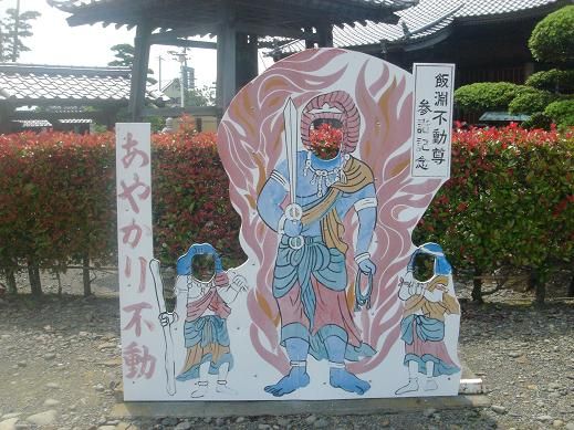 長徳寺の駐車場には、珍しい不動明王の顔はめ(記念撮影用の顔を出す穴が開けられたパネル)が設置され人気です。