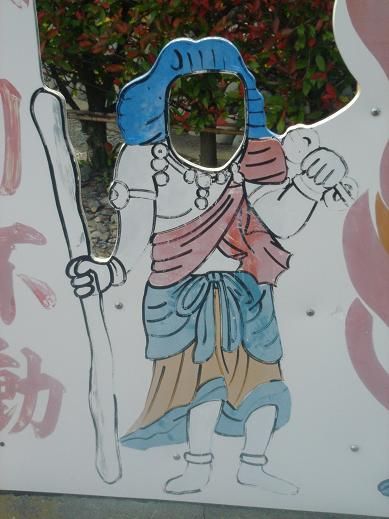 2人の八大童子も一緒なので、正確には不動三尊の顔はめです。