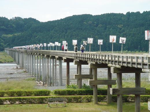 静岡県島田市宝来町・阪本の蓬莱橋(ほうらいばし)は、大井川に架かるギネス認定 世界最長の木造歩道橋です。