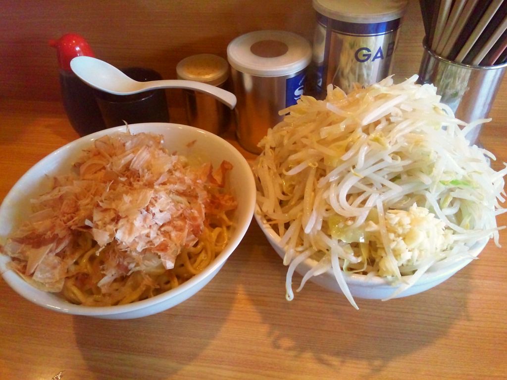 熱々の麺に、たまご2つを絡めて、花かつおをのっけて