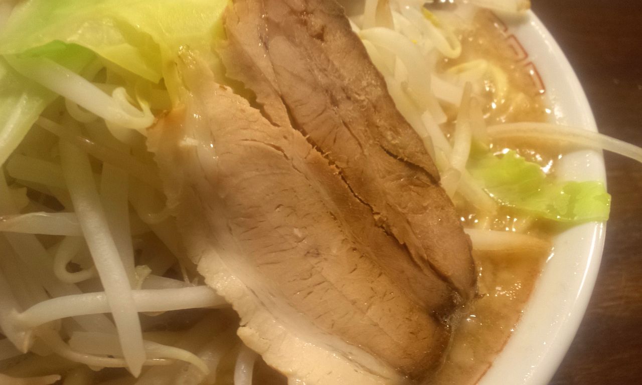 全体的には雰囲気は出ているが、どうしてもインスパイア系でよくある二郎の脂っこさを出すのに背アブラをゴシゴシする事で、アブラの甘味が強くなってしまう感がある。