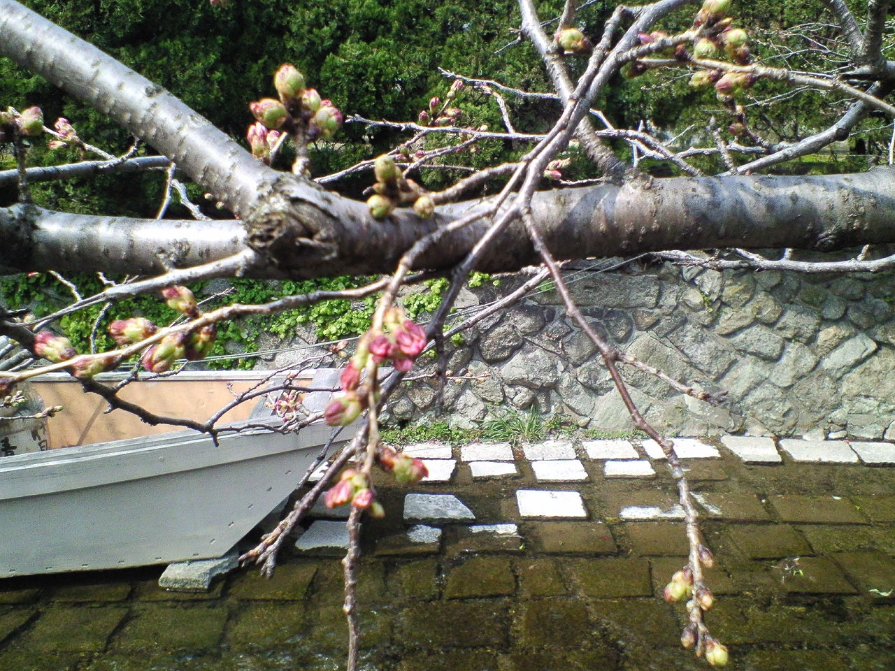 上木屋町の桜もようやく蕾が膨らみはじめました。