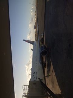 往路の飛行機は満席!