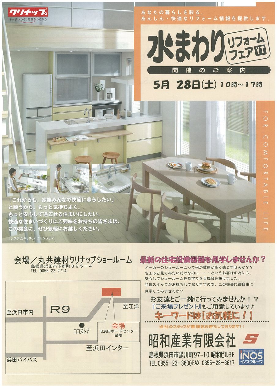 5月28日(土)は、以前ご案内しました、住宅設備機器メーカーのクリナップさんとのリフォーム相談会です。
