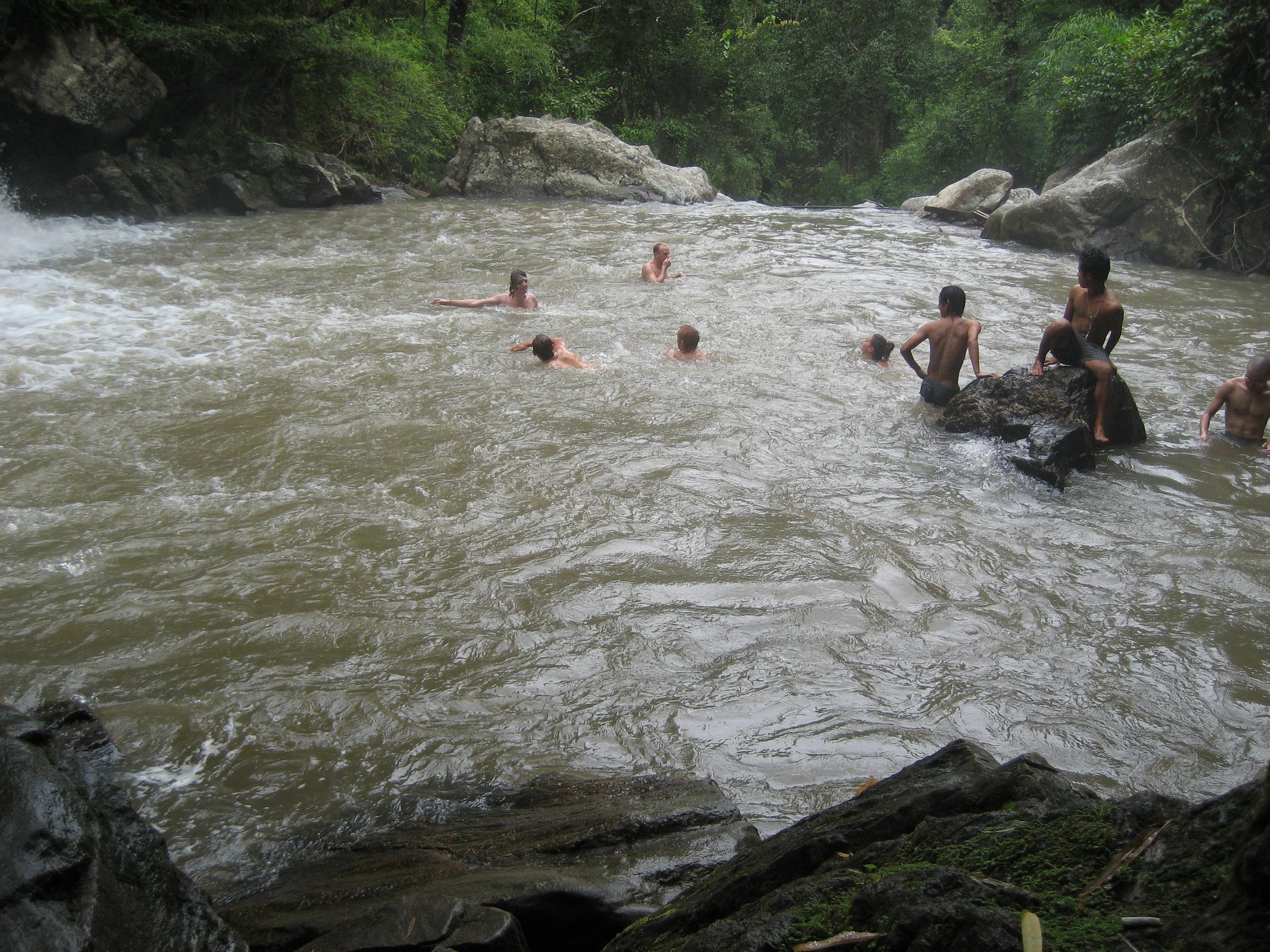 山越えの途中、滝つぼに飛び込む。