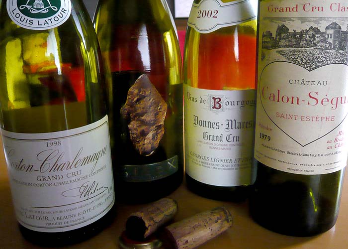 『シレックス』とは、火打ち石のこと。地区特有の、石灰質を多く含んだ土壌に由来している。エティケットにも火打ち石が大きくモチーフされ、キャップレスのブション(栓)といいモダンを感じさせるね。ビンはとても重厚なもので、隣の『コルトン=シャルルマーニュ』が貧相に見えてしまうほどだ。
