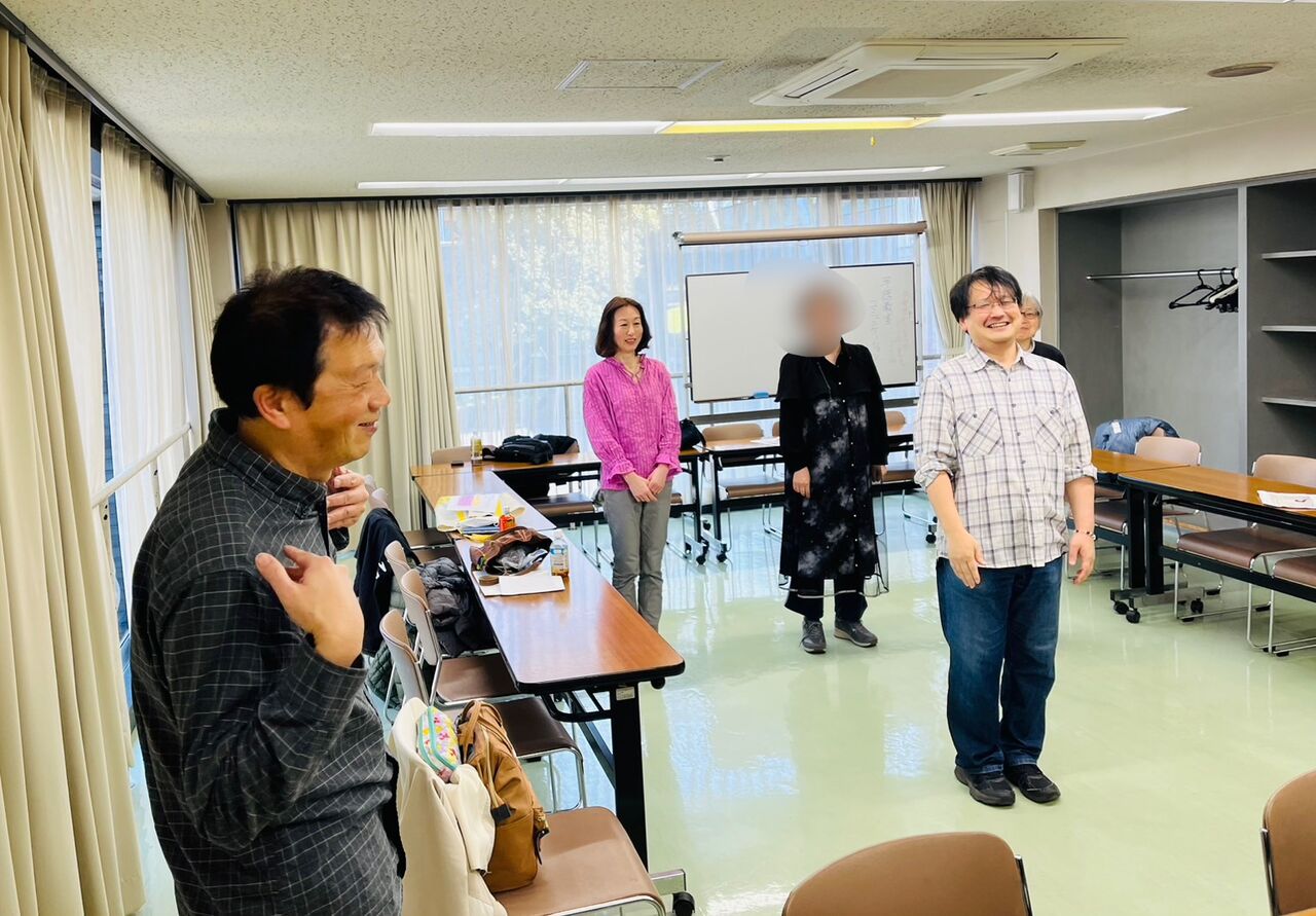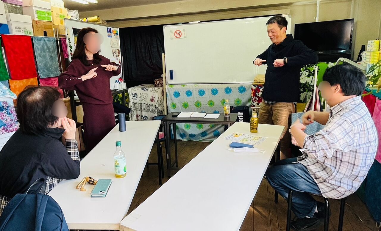 「不明」(荷物が消えた)の表現、「最高」「限界」(お腹がいっぱいでこれ以上食べられない)、「死亡」(スマホの電池切れの時に使ったりする)、「簡単」(吹けば飛ぶ)などの表現を、以前に学習した内容も繰り返しながら、指導いただきました。