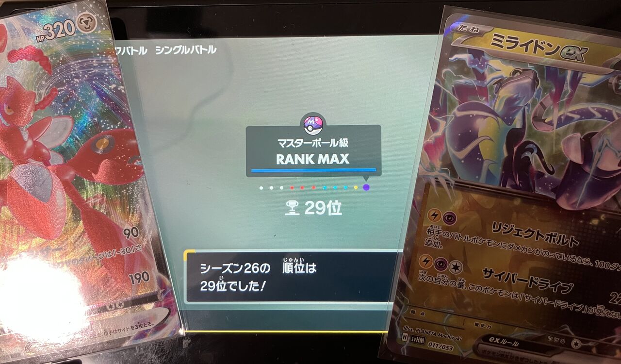 現在レギュG全シーズンでミライハッサムを使用し、全シーズン最終2桁継続中です。