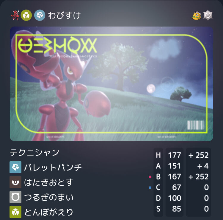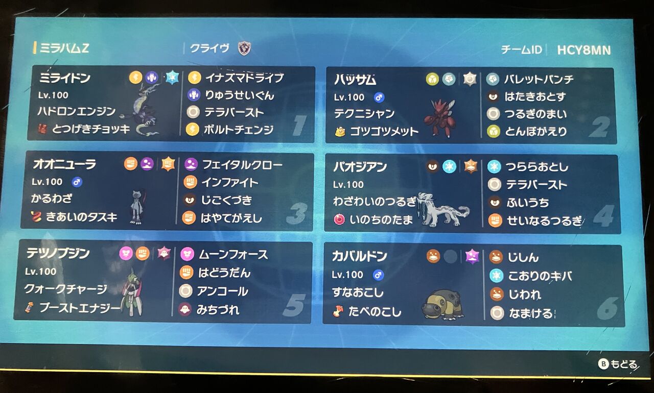 型バレもしまくってるし、一点読み行動されまくるけど(特に疾風返し)、それでも「この構築使ってたら最終2桁はとれるんやろな~」とのんきにランクマできるくらい信頼してる構築です。