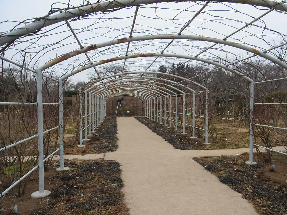 つるバラ‘ポールズ・ヒマラヤン・ムスク’のトンネルはほぼ作業が完了しました。