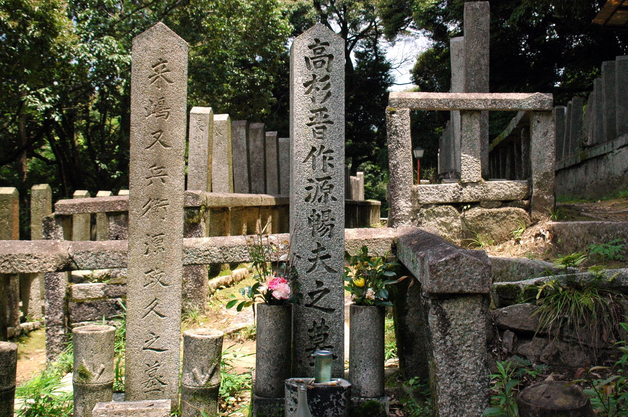 高杉晋作の墓はすごいお供えものいっぱいで賑わってた。