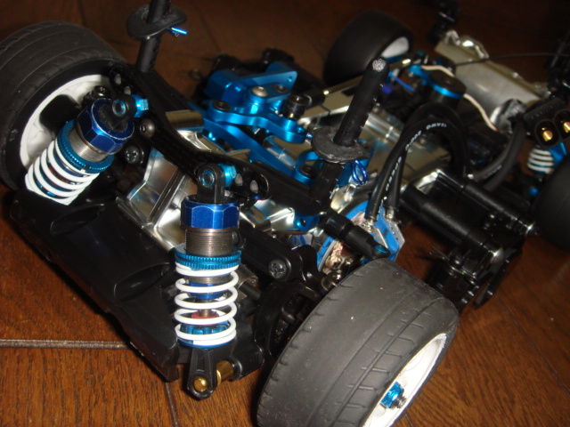 。京商ビックボアを基本ダンパにしている人も多いと思いますが、実はコレを採用しました。投資は大きかったですが、今までマシンに合わせてドライブしてたのが、ドライブにマシンがついてくるような感覚になりました。ちょっと言いすぎかもしれませんが、オリジナリティを盛り込んでいくと愛着もうまれてくるので、良い方向にすすんでいると思います。RB5は5月レースの直前に採用したNCGサスアームのお陰で好調を維持。サニーのRB5ユーザは少ないですが、NCGサスアームを採用する際は京商の長いチタンコートシャフトと、ダンパ取付け位置はサスアーム外側とダンパステーの一番内側(一番寝かせ)をお勧めします。オイルはアソシの22.5あたりで。ダンパーがダンパーステーとサスアームに干渉するので削る必要がありますが。まあ、私のセットは誰も真似してくれないんですけどね(^^♪。最近は8mmショートなんて呼ばれてますが、やっぱショートは運転が楽しいですよ