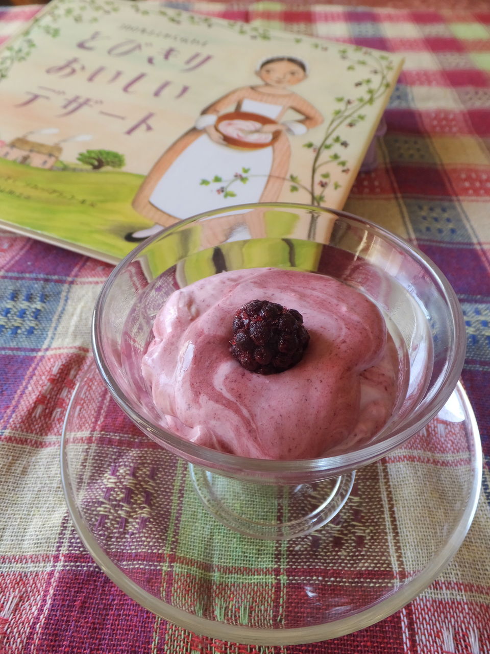 「とびきりおいしいデザート」(E.ジェンキンズ著)のブラックベリー・フールのレシピを参考にしています。1710年、1810年、1910年、2010年の四つの家族がそれぞれの時代のやり方でフールを作る様が描かれる絵本です。