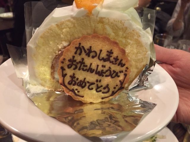 打ち上げで祝ってもらった、誕生日ケーキの画像を添えて。