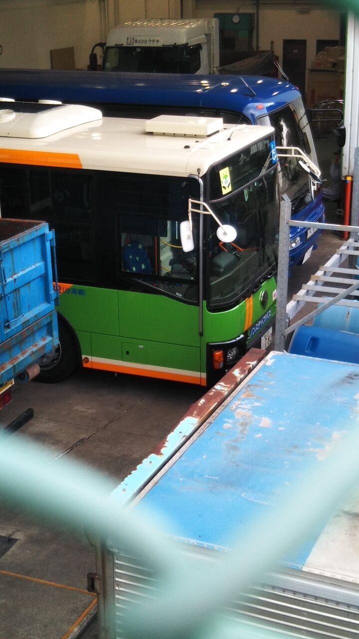 三菱ふそうの整備工場の前を通ったら都営バスの新車が出てきて、撮ろうとしたのですが追いつく間もなく走り去ってしまいました。と思ったら、工場の外から見える場所に同型車がもう1台止まっていたので撮影。