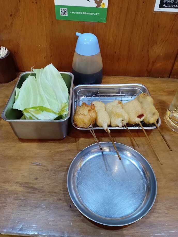 今年最後の一人飲みは串カツの店に入り、まずはハイボールで乾杯し串カツを何品か注文。