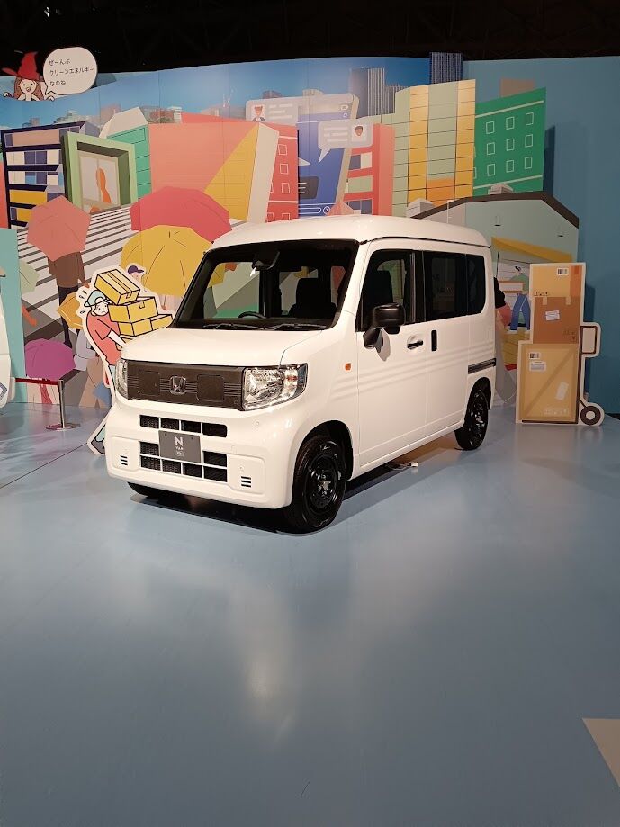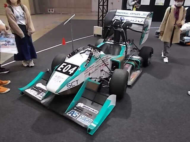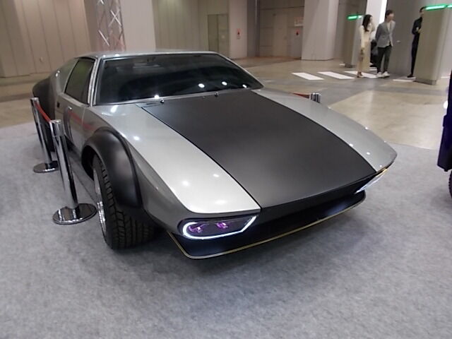 次いでJ-BEVU(株)のブースを見たらこちらにも様々なEVがあったのですが、後ろにさり気なく置かれたスポーツタイプの車が気になりました。
