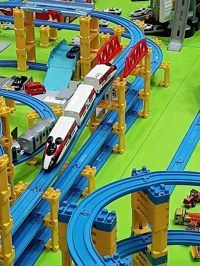 こちらは子供向けのアトラクションがメインになり、西1ホールには子供専用のカートだったりプラレールで遊ぶコーナーなどが設置されていました。