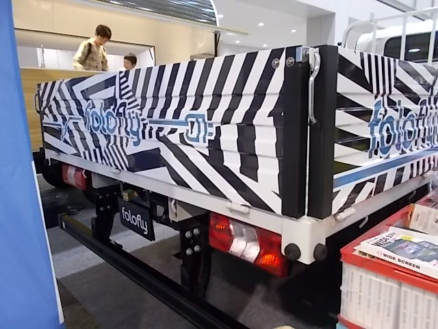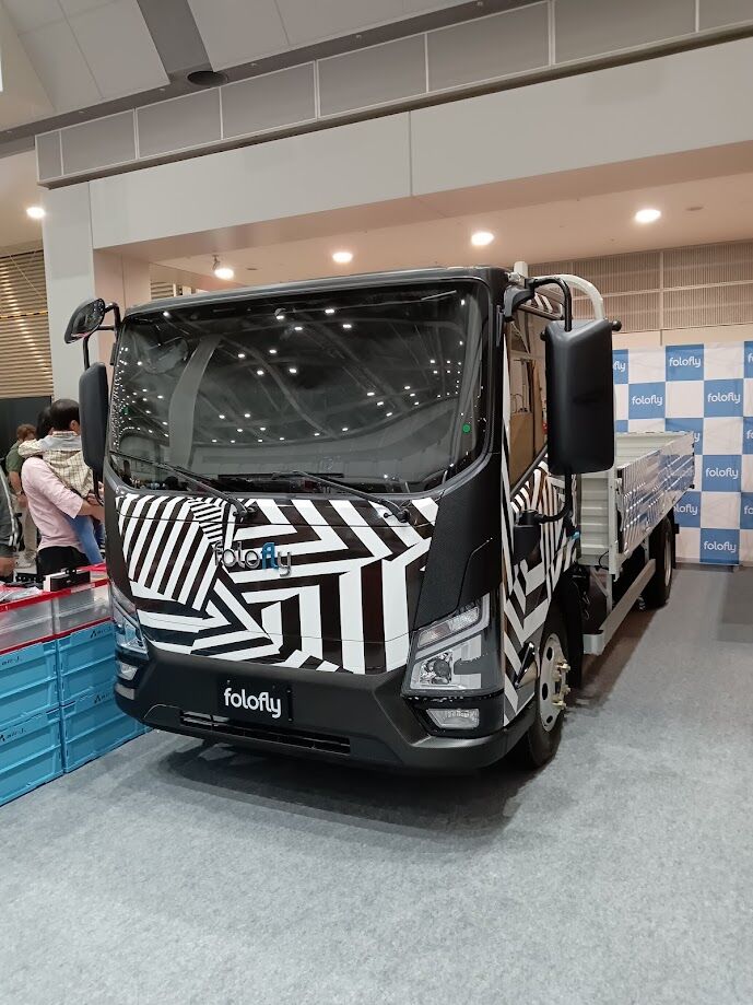 次に、端っこにあったEV商用車を手掛けるフォロフライ(folofly)のブースを見たら怪しいトラックを発見。