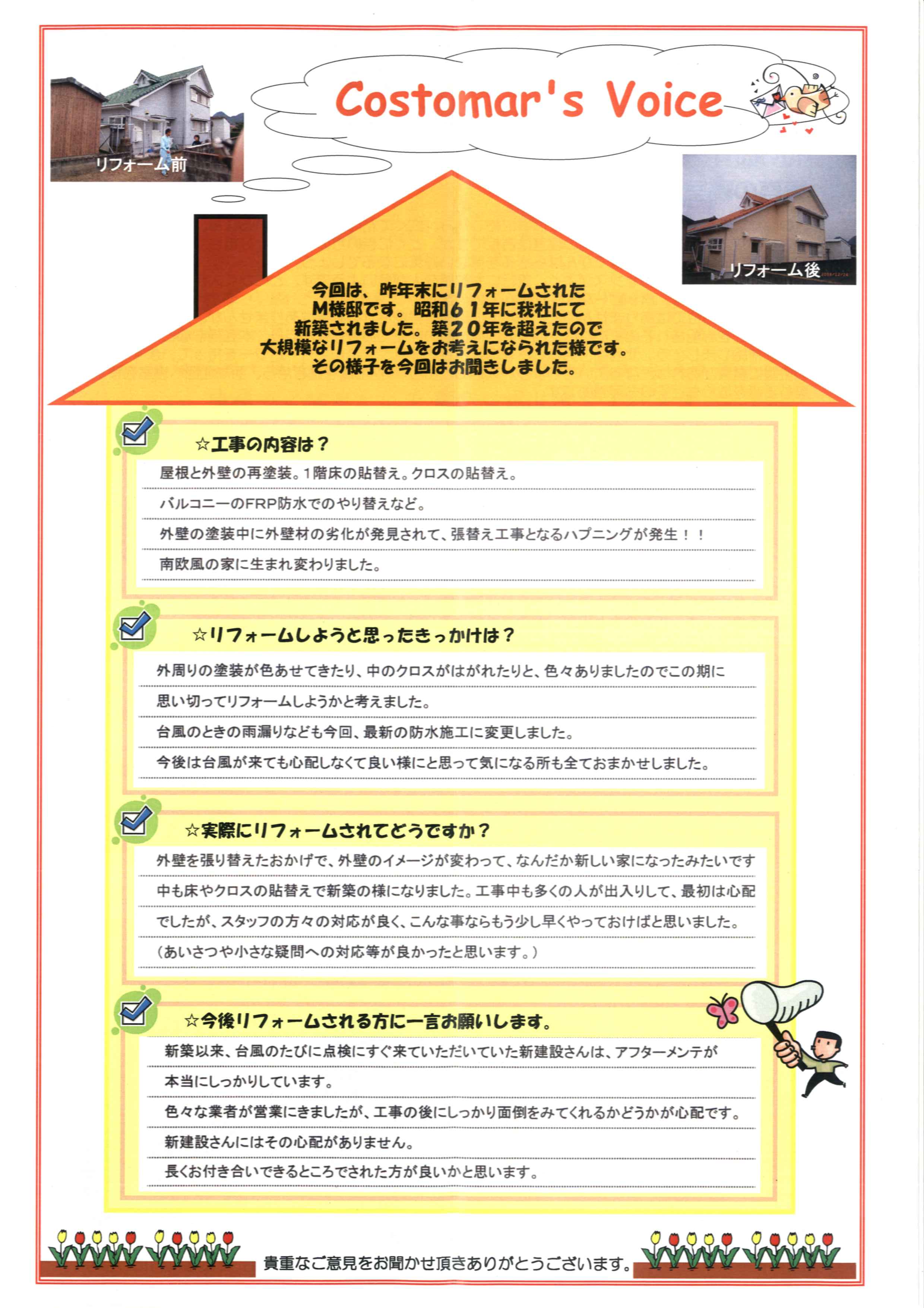 家造りの素人の自分が安心させられる内容で、After Serviceの