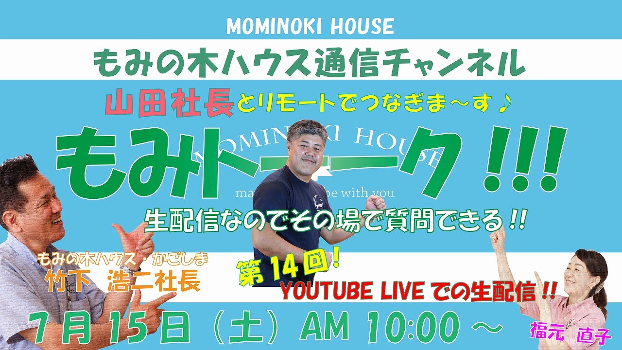 7月月15日(土)の10時からYouTubeライブ「もみトーク」が配信されます。