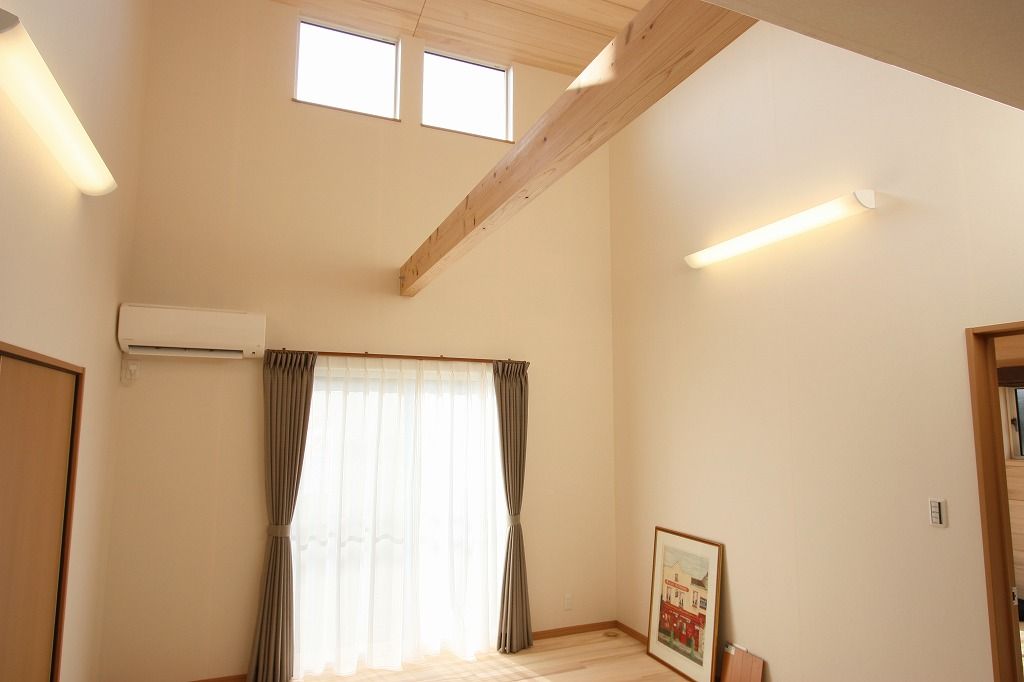 2階天井は勾配天井になっているのはそのためです。2階は必要最低限での設計です。
