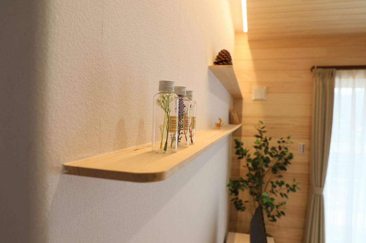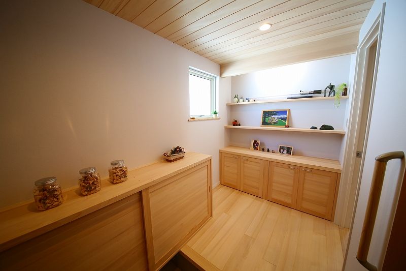 床は全て「もみの木」、シューズクロークなどにも消臭効果を狙ってもみの木の棚板が使われています。