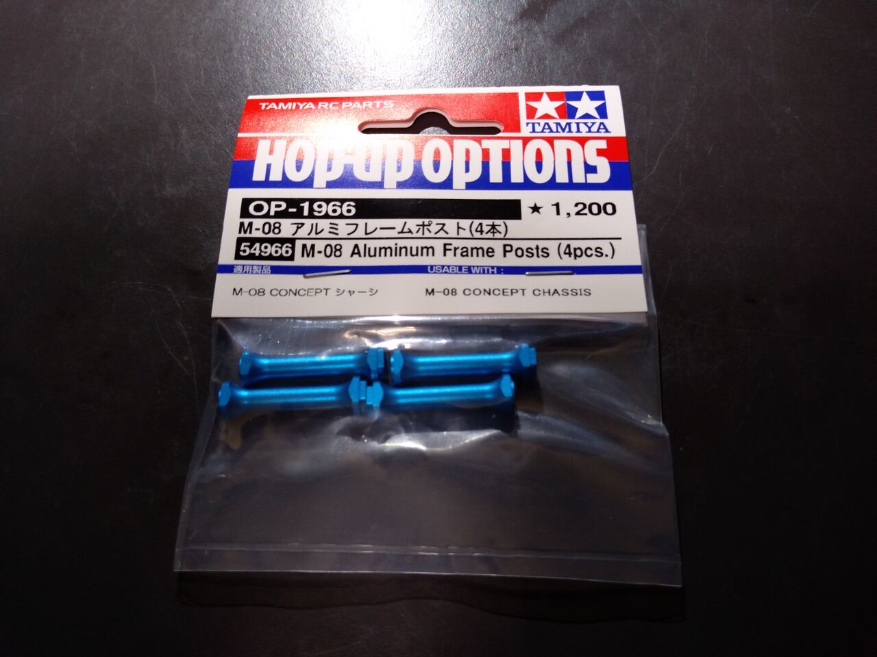 これは待ちに待ったM-08のアルミフレームポスト。ノーマルは柔らかい材質でちょっと不安があった。見た目も青くてステキだ☆