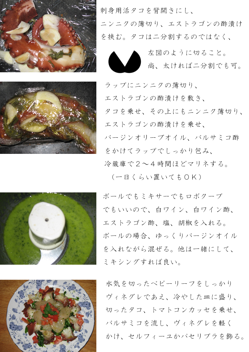 何度か詳細を書いているタコマリネのサラダの写真を。