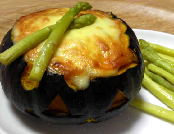 中はホワイトソースやミートソースで器にしてる部分はかぼちゃがホクホクしていて美味しい。