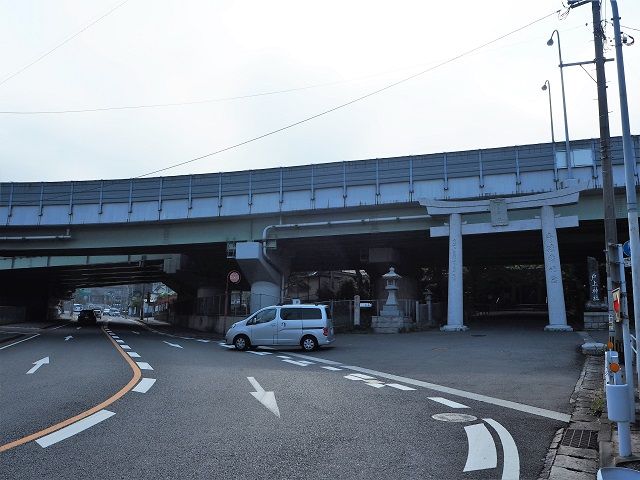 高速道を挟んで一の鳥居と二の鳥居 戸上(とのえ)神社(福岡県北九州市)