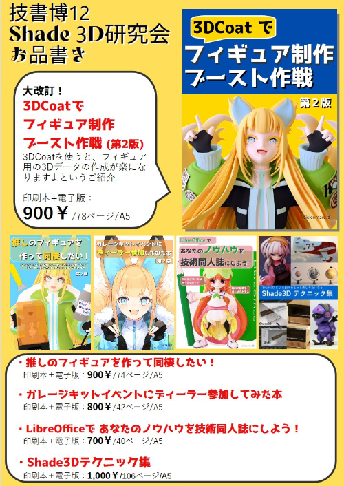 さらにニッチな「3DCoatでフィギュア制作ブースト作戦」も持ち込みの大部分が売れたのも嬉しかったです。