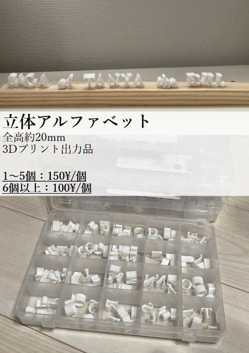 告知はしませんでしたが、3Dプリントしたアルファベット(20mmサイズくらい)を、同人誌2冊購入いただいた方に「名前文字数をプレゼント」としていましたが、ほとんど需要がありませんでした・・・見てくれる方は結構いたんだけれど、いらないや と言われるパターンで。