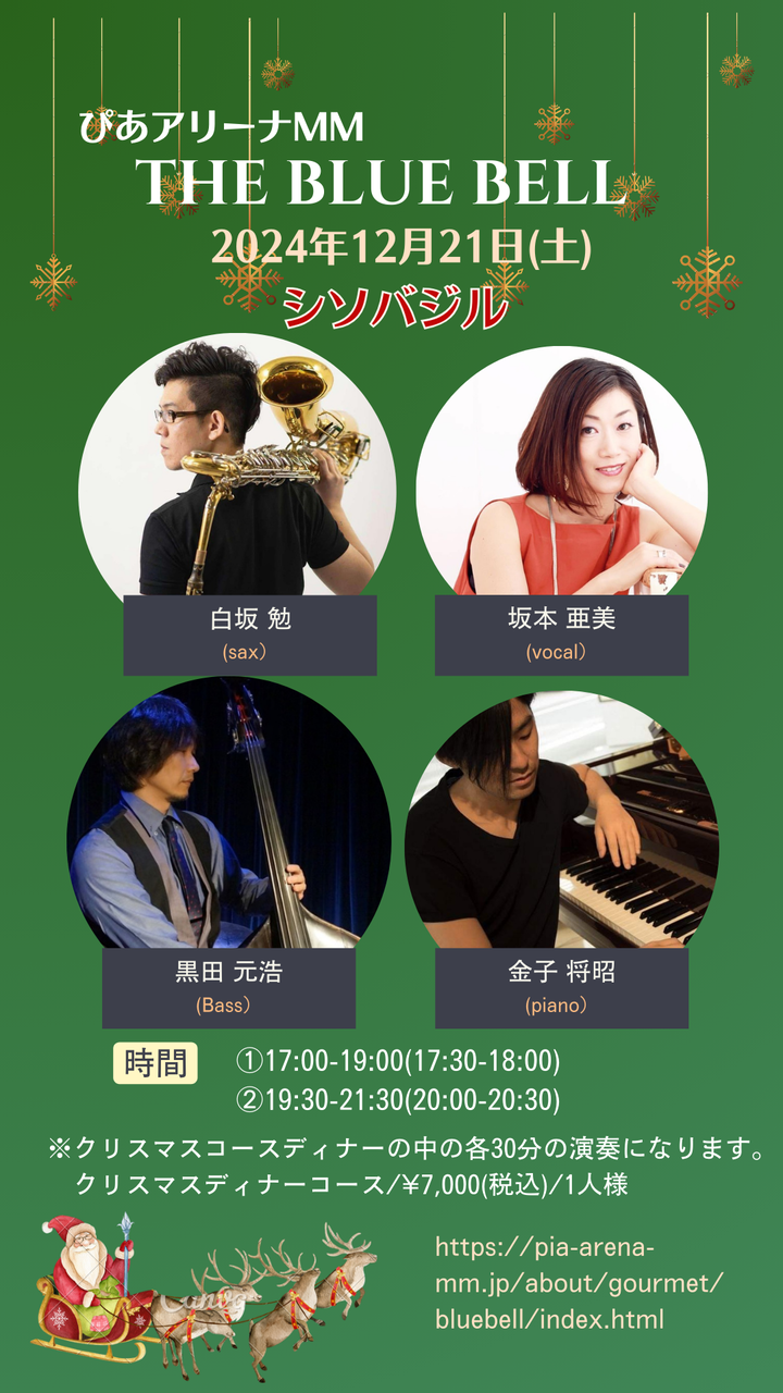 ※クリスマスコースディナーの中の各30分の演奏になります。
