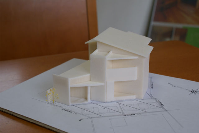 今回は敷地形状に合わせて変形した形の建物で、