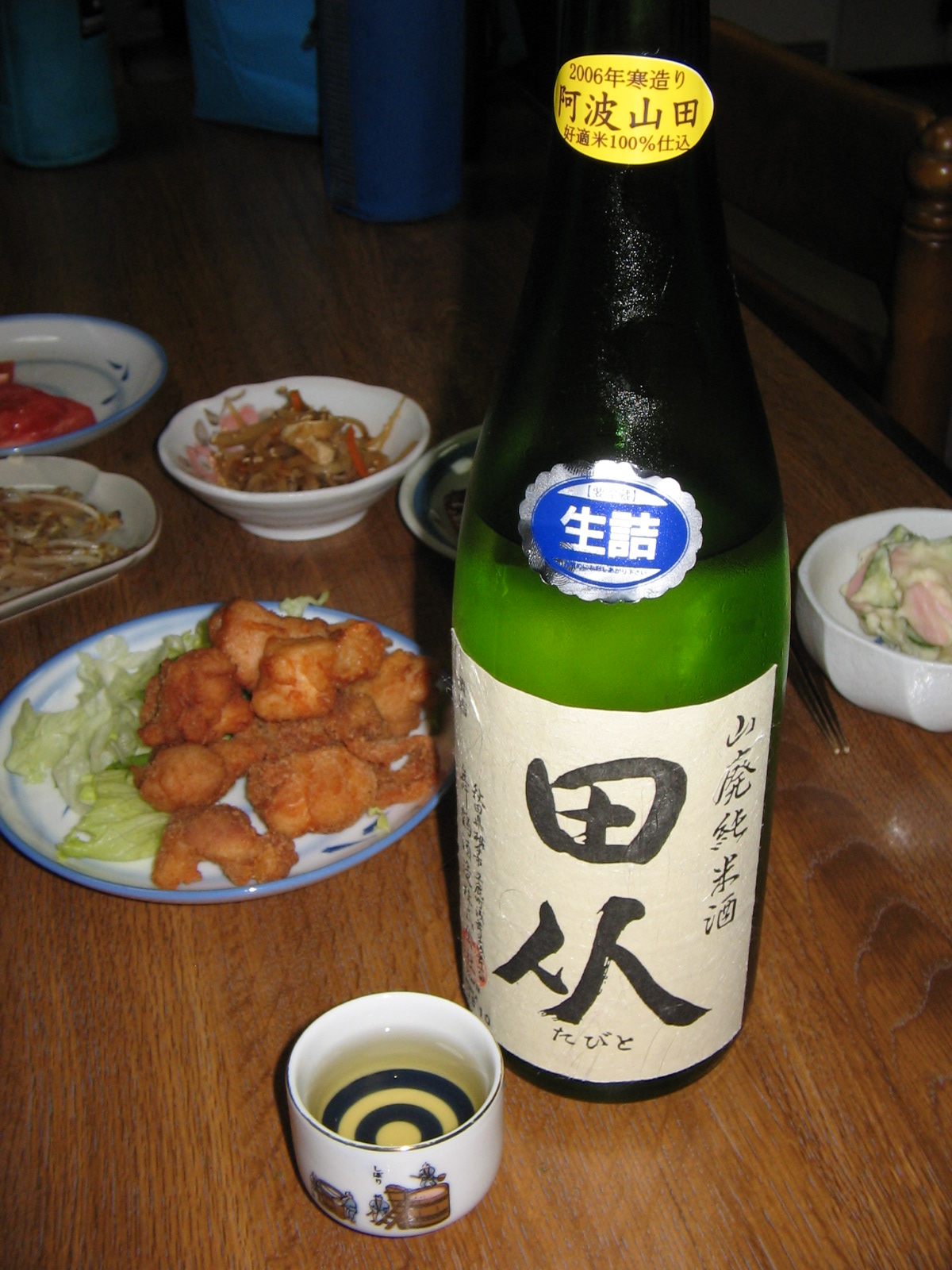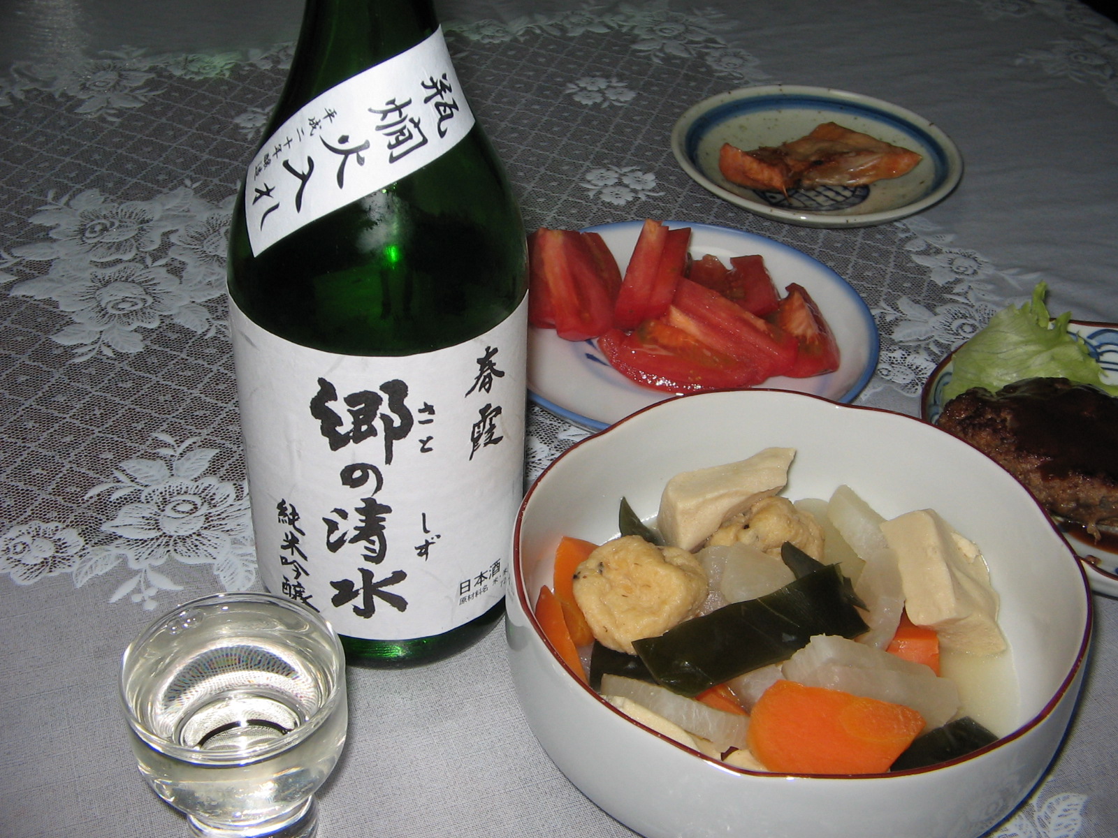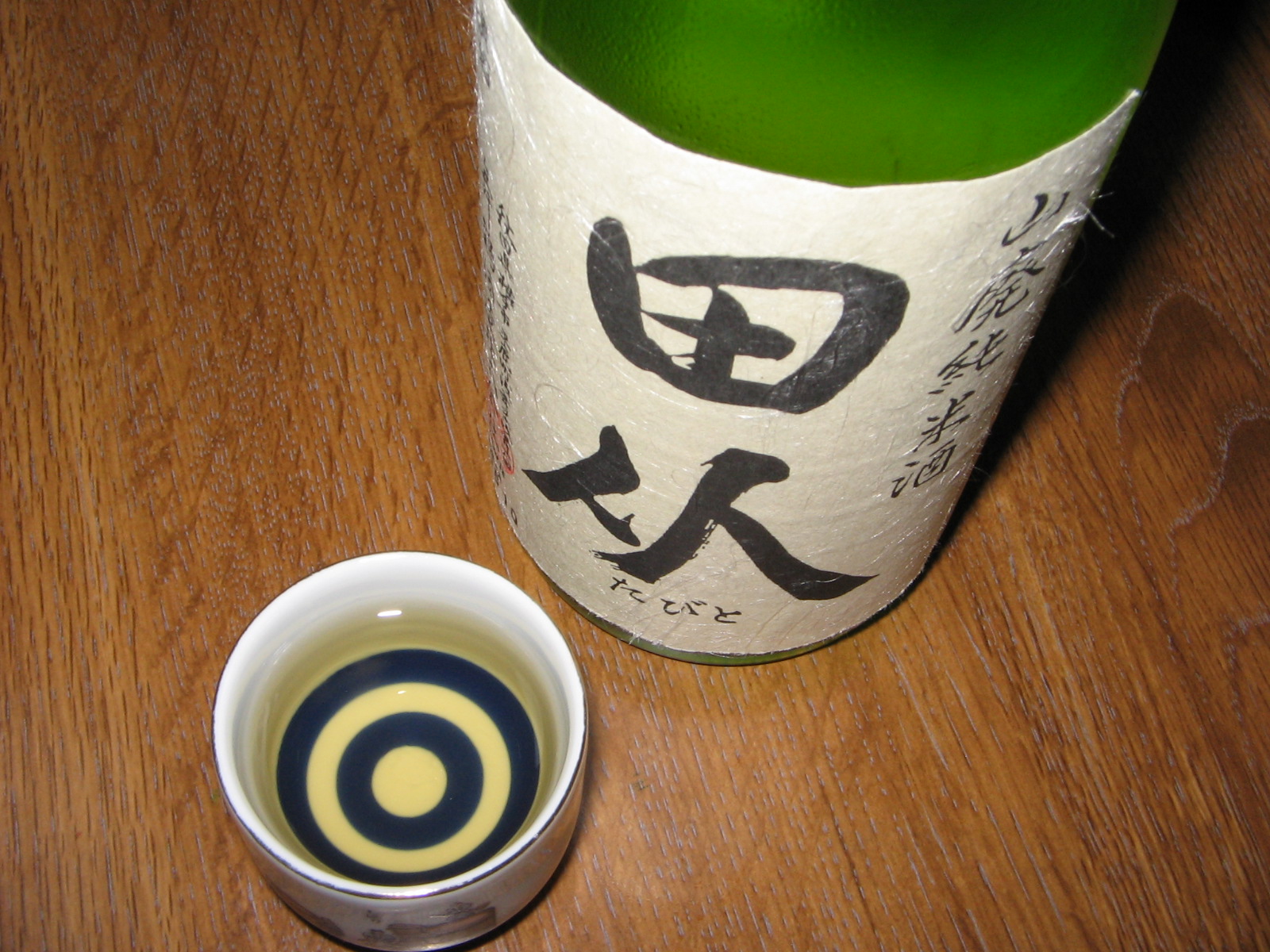 搾ってからまだ1ヶ月のお酒は、ほんの〜り甘い香で、一口含むとすぃ〜っと軽めのタッチながら滑らかに入っていく。一瞬軽い酒と思われたが、すぐにじゅわじゅわ〜〜っと甘みが膨らんでくる。意外に吞み応えあるじゃん!と思った瞬間、その余韻はすーっと消えちゃったよ^^;軽いのか重いのか、甘いのか辛いのか、一度に4つの味が楽しめる楽しいお酒でした^^