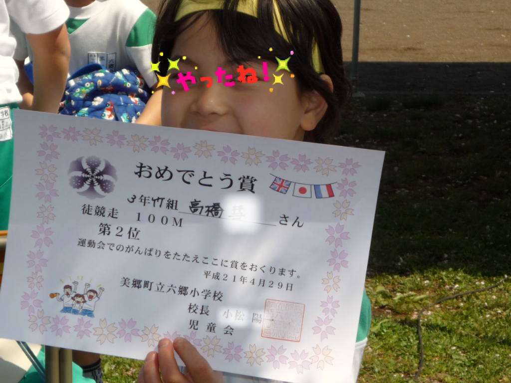 スタートから男の子との争いは1位同着でゴールしたかに見えたのだが、ばっちっこは2位だった。すぐ物言いをつけでがったども、こごは我慢我慢大人気ない^^;