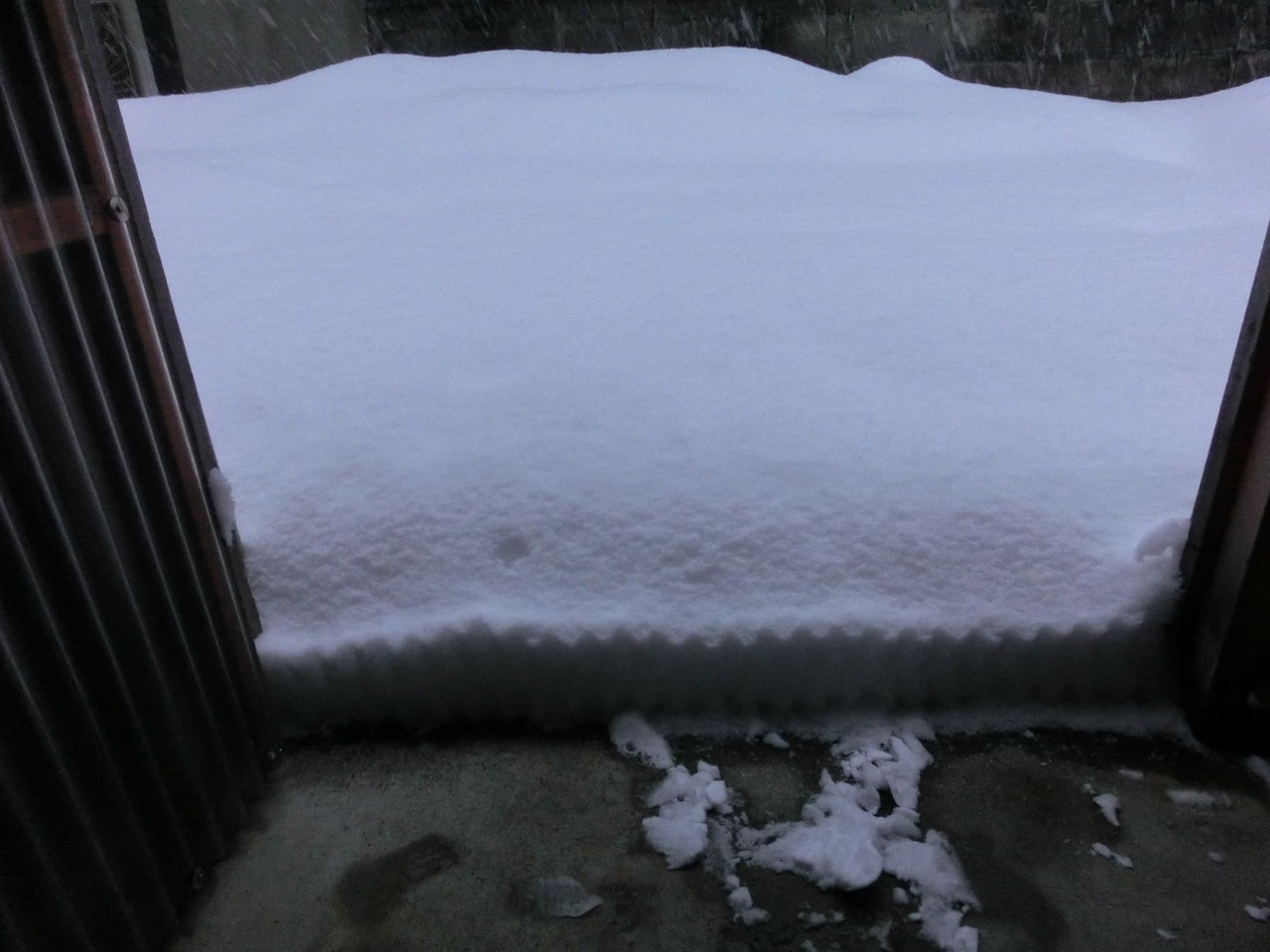 今朝は軽く積もってた。