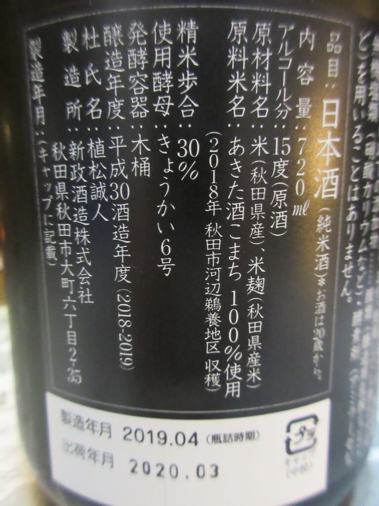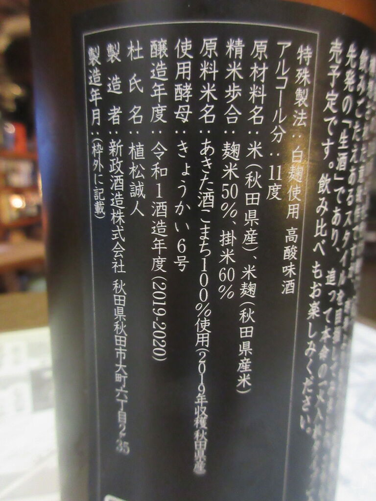★新政・ヴィリジアン2019 生酛木桶純米