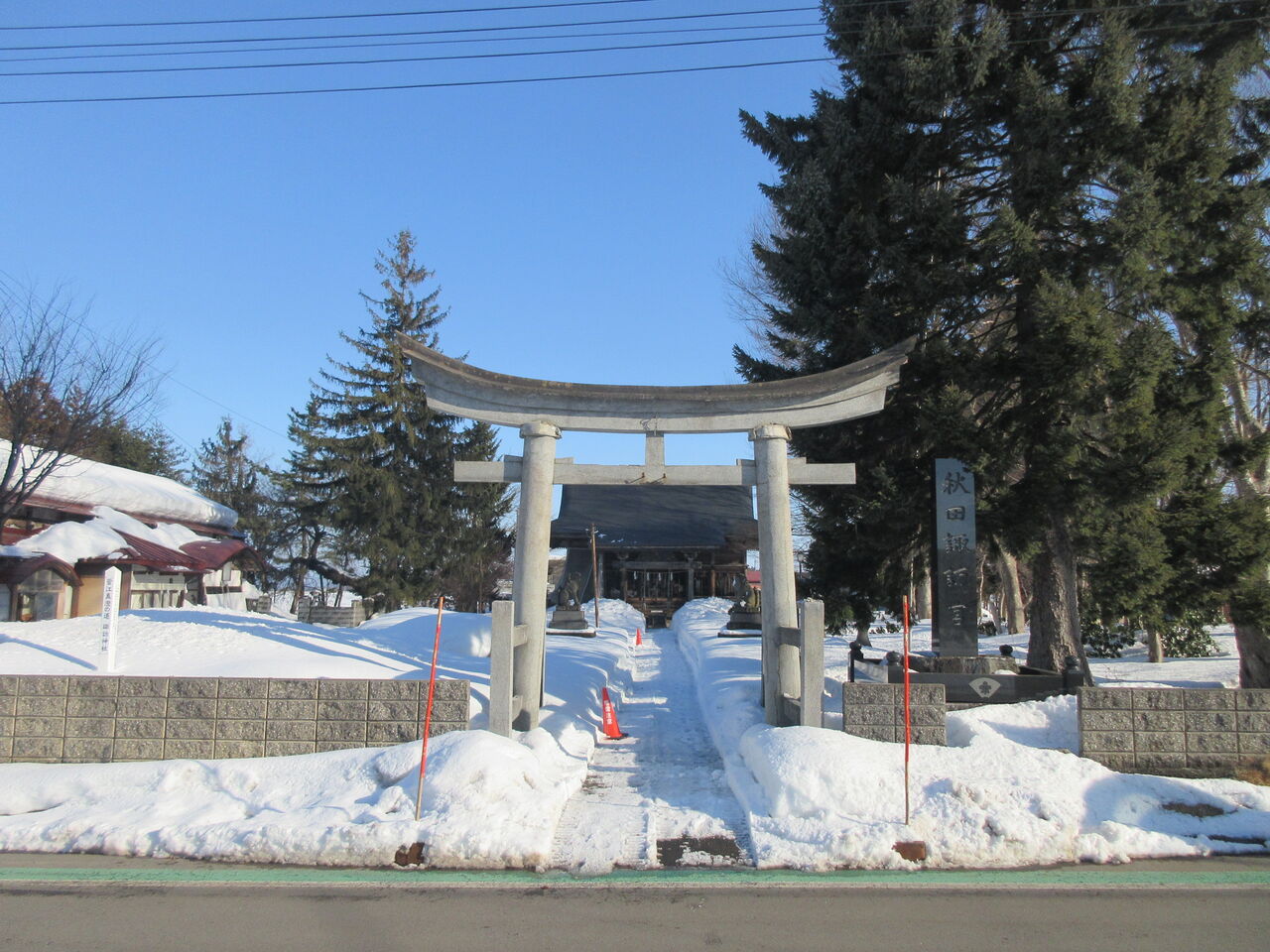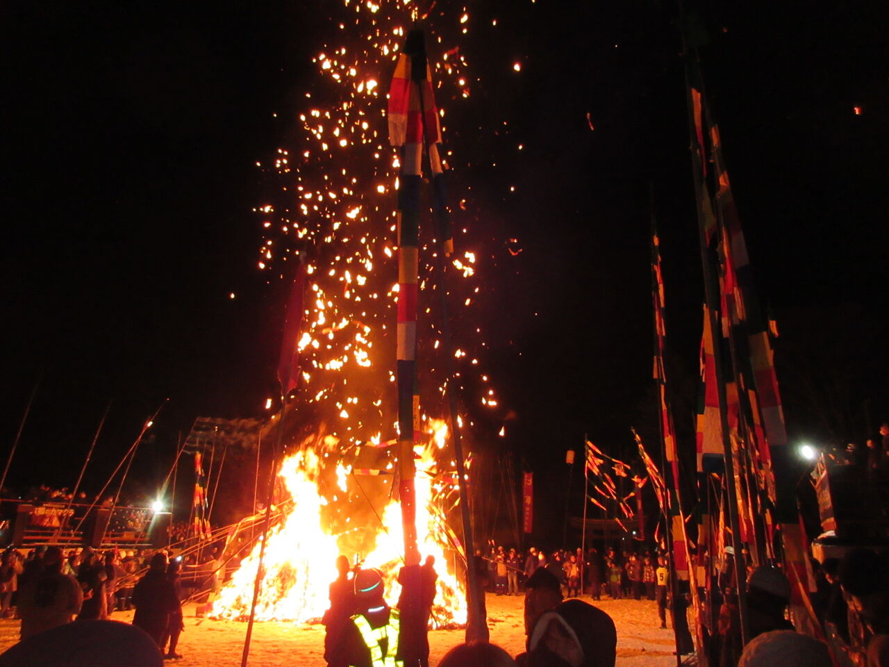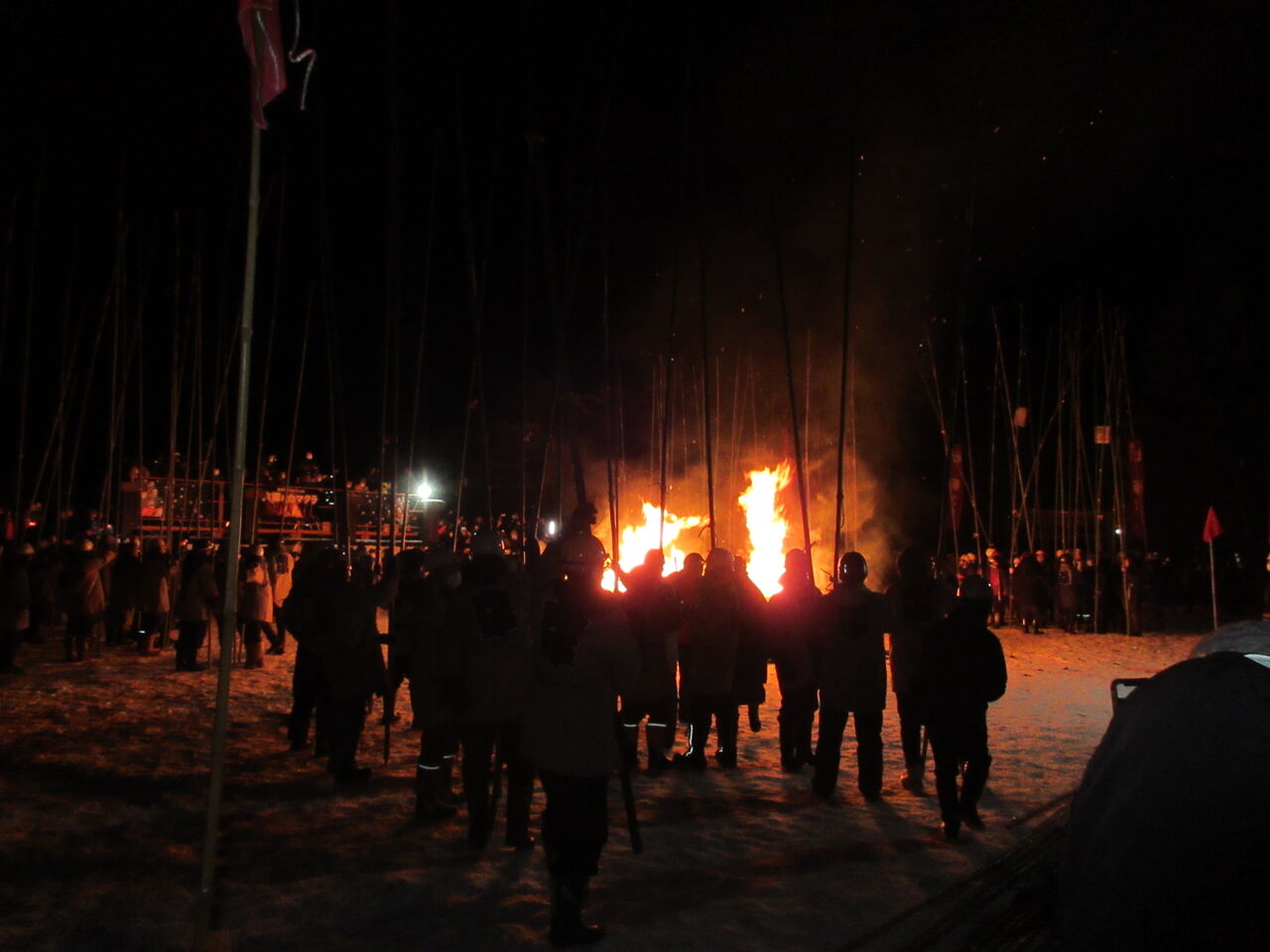 竹うち会場は諏訪神社の真向いの、