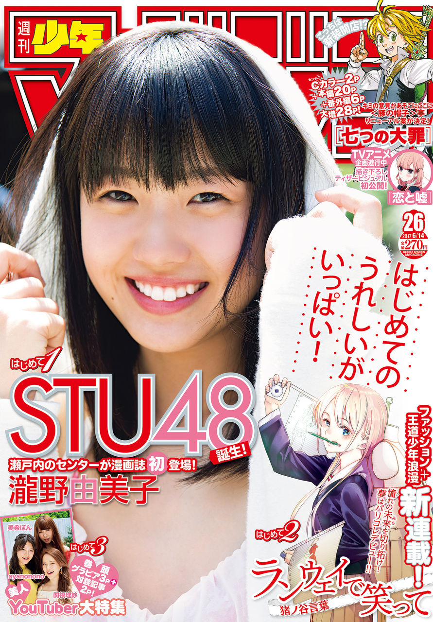 拠点にするSTU48のセンター、瀧野由美子(19)で、31日発売の「週刊少年マガジン」の表紙に大抜てき。瀧野は「本当に自分の中
