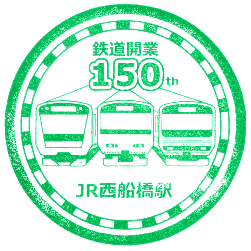 西船橋駅で開催されたイベント当日限定で押印可能だったスタンプが期間限定で復活した際に押印しました。総武線各駅停車・武蔵野線・京葉線の車両が描かれています。