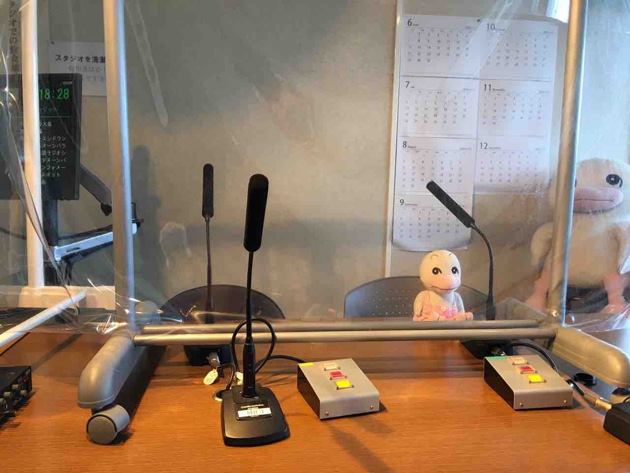 コロナ対策で、スタジオの私の前には
