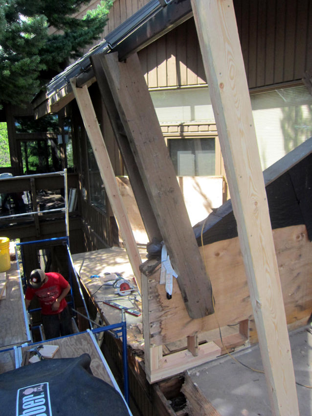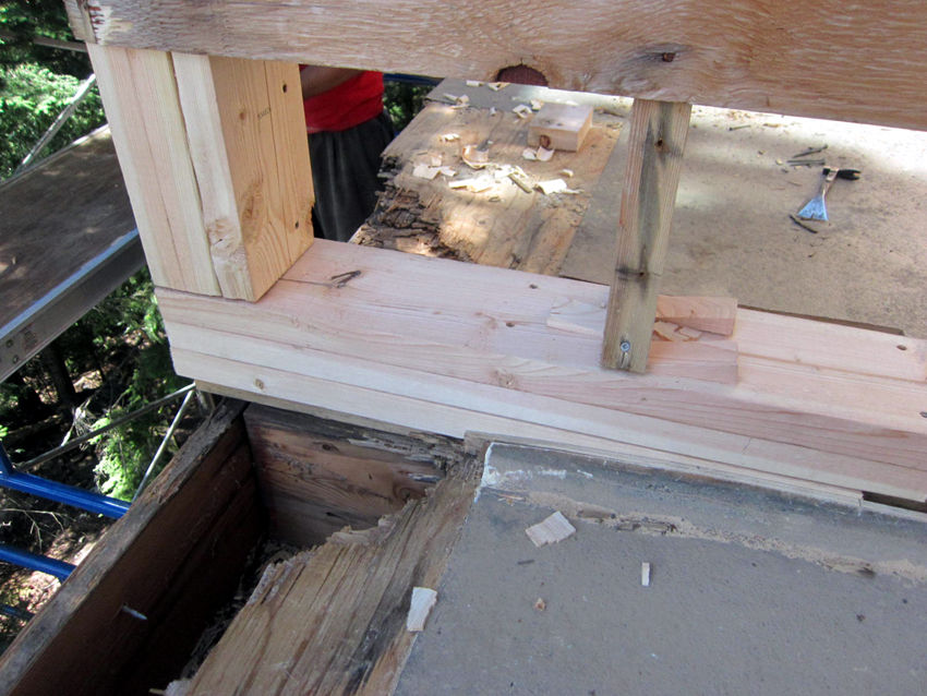 只今は腐った壁やパティオのレールや柱の補修工事です。
