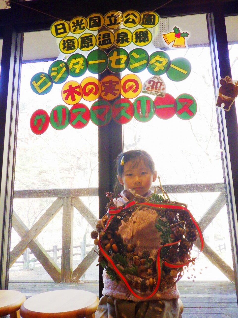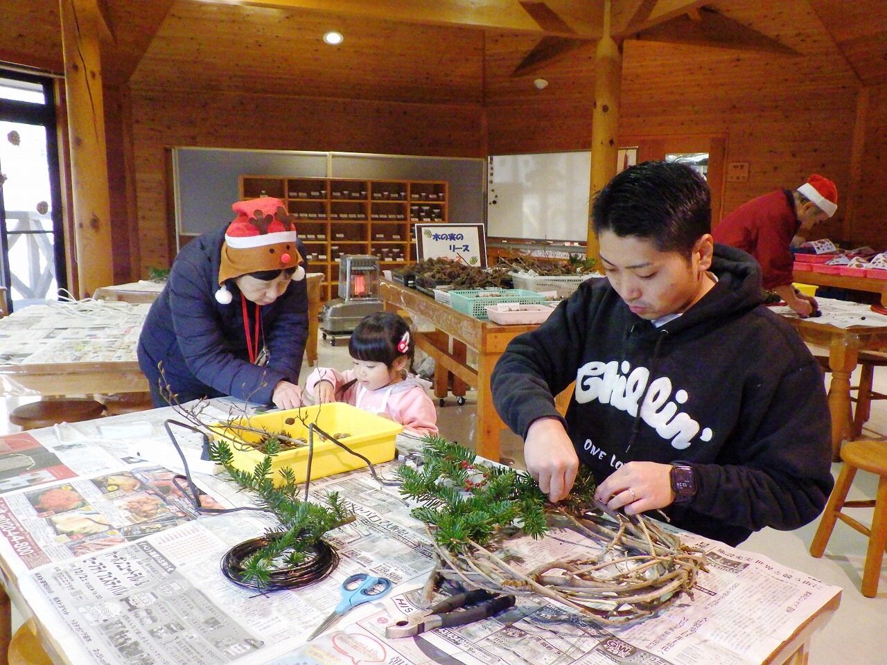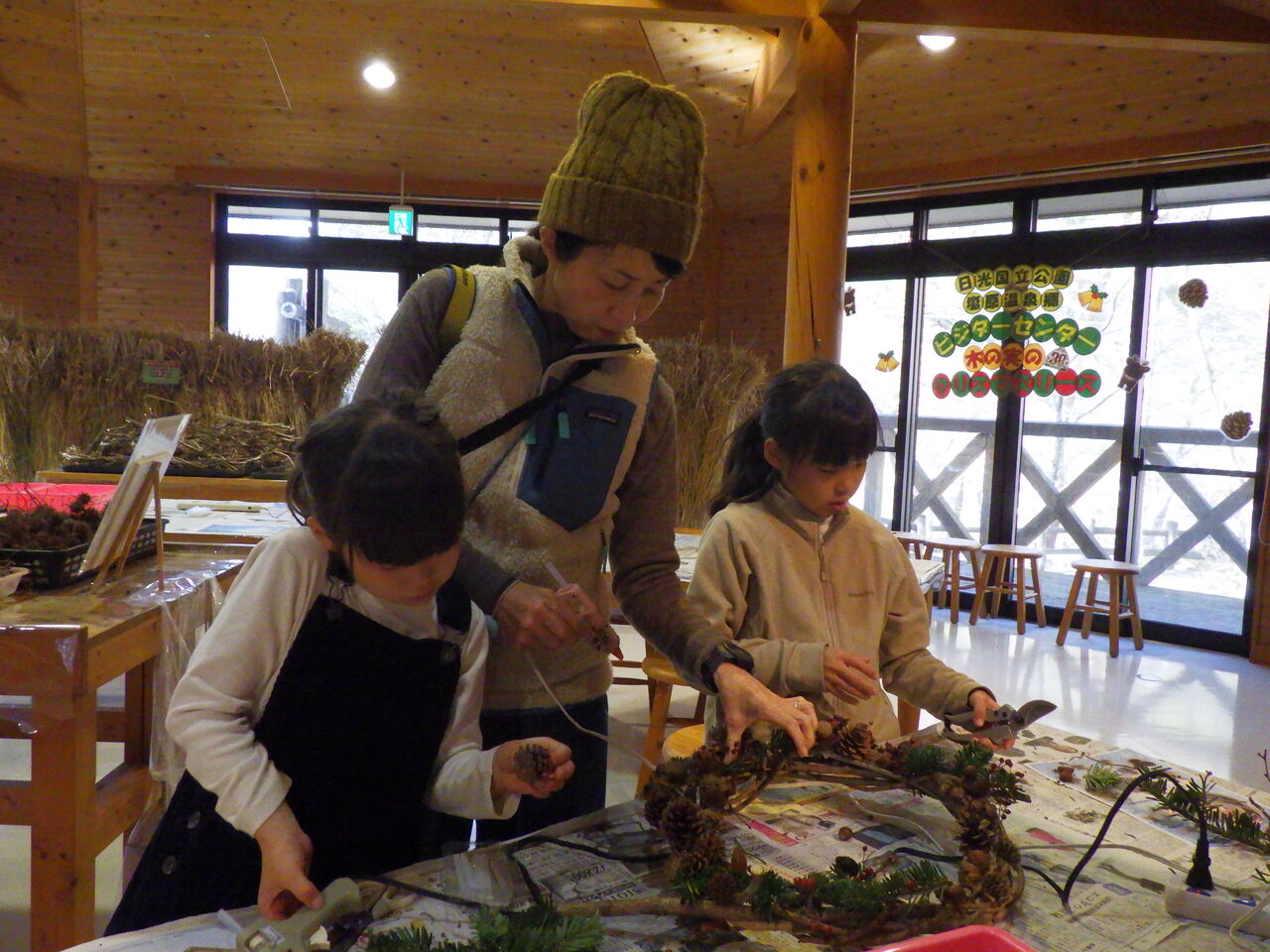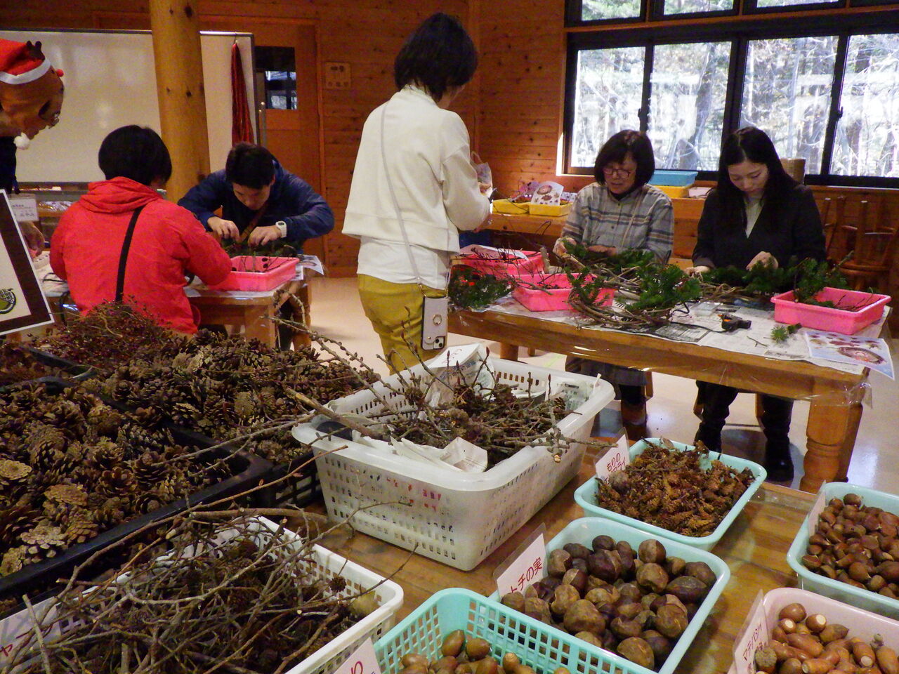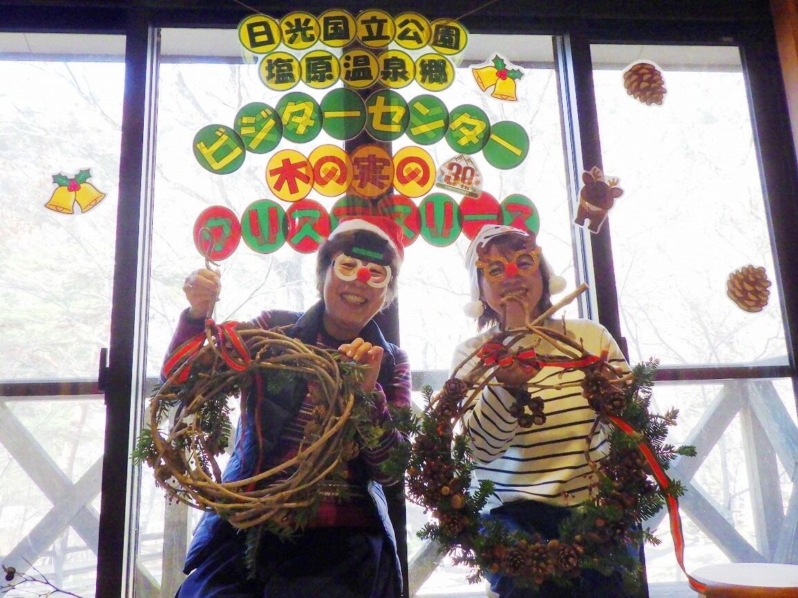 さあ、冬の夜長を彩る素敵なリースを作りましょう♪ ベースも、飾る木の実も、全て塩原の森の恵みです。