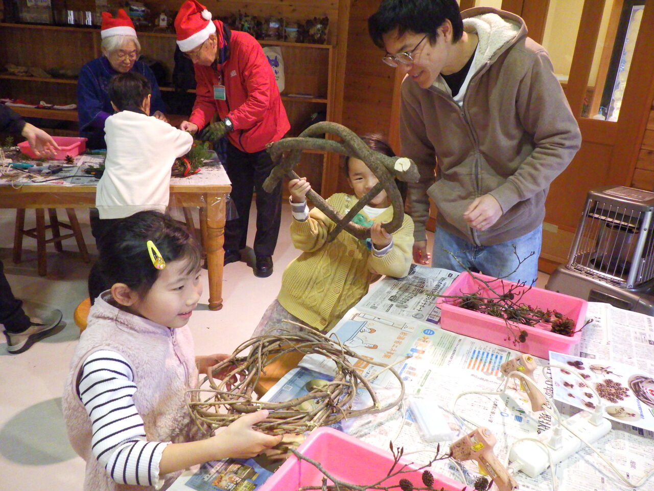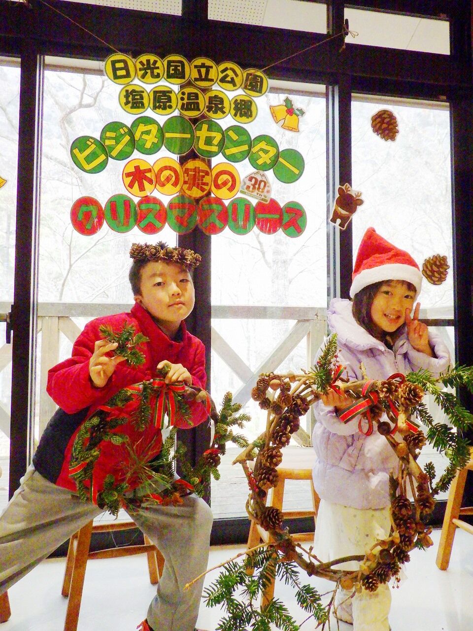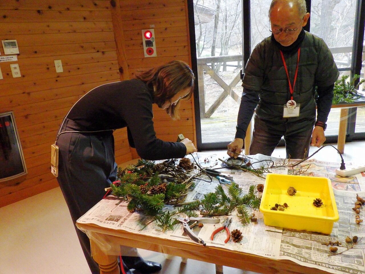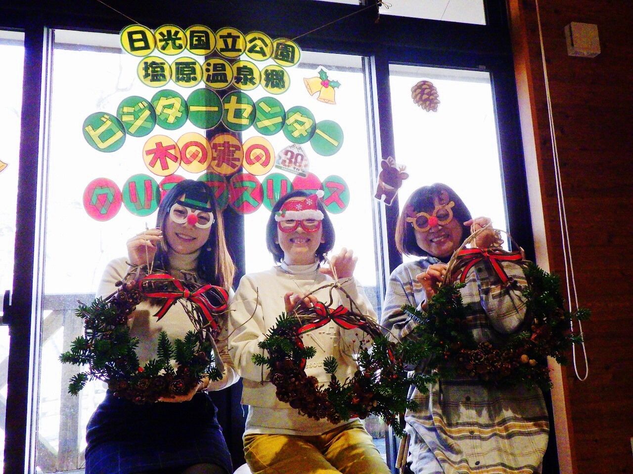 さあ、冬の夜長を彩る素敵なリースを作りましょう♪ ベースも、飾る木の実も、全て塩原の森の恵みです。