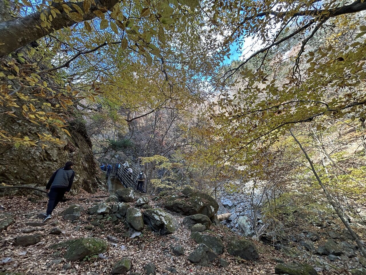 紅葉に染まる、渓谷景観・・・パークコンダクターさんの足も止まります。